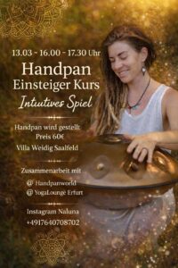 Handpan Einsteigerkurs aktualisiert am 10/02/2026 Termin Details Datum: 13/03/2026 16:00 – 17:30 Vorheriger Eintrag: Sumba Tanz Startseite Nächster Eintrag: Heilpflanzenschule Wildrose